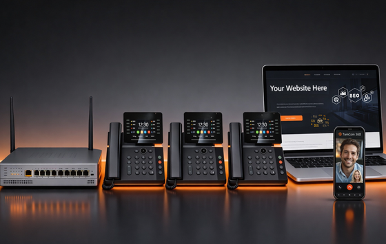 Pre-programmed phones shipped to your door. Plug them in and you're live.